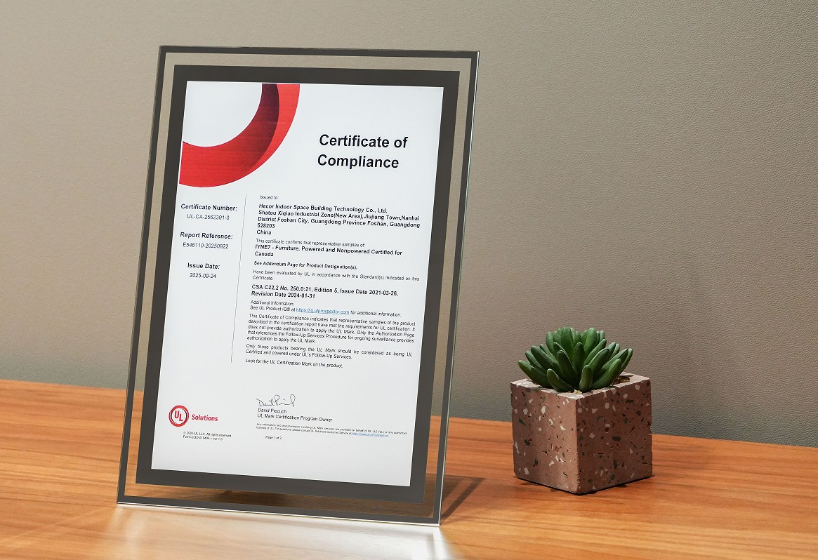 近日,HECOR赫高旗下靜音艙產品成功通過UL /CUL 962認證。這標志著該產品在電氣性能與材料安全性方面已完全符合北美市場的準入標準,是赫高拓展國際市場、贏得用戶信賴的關鍵一步。